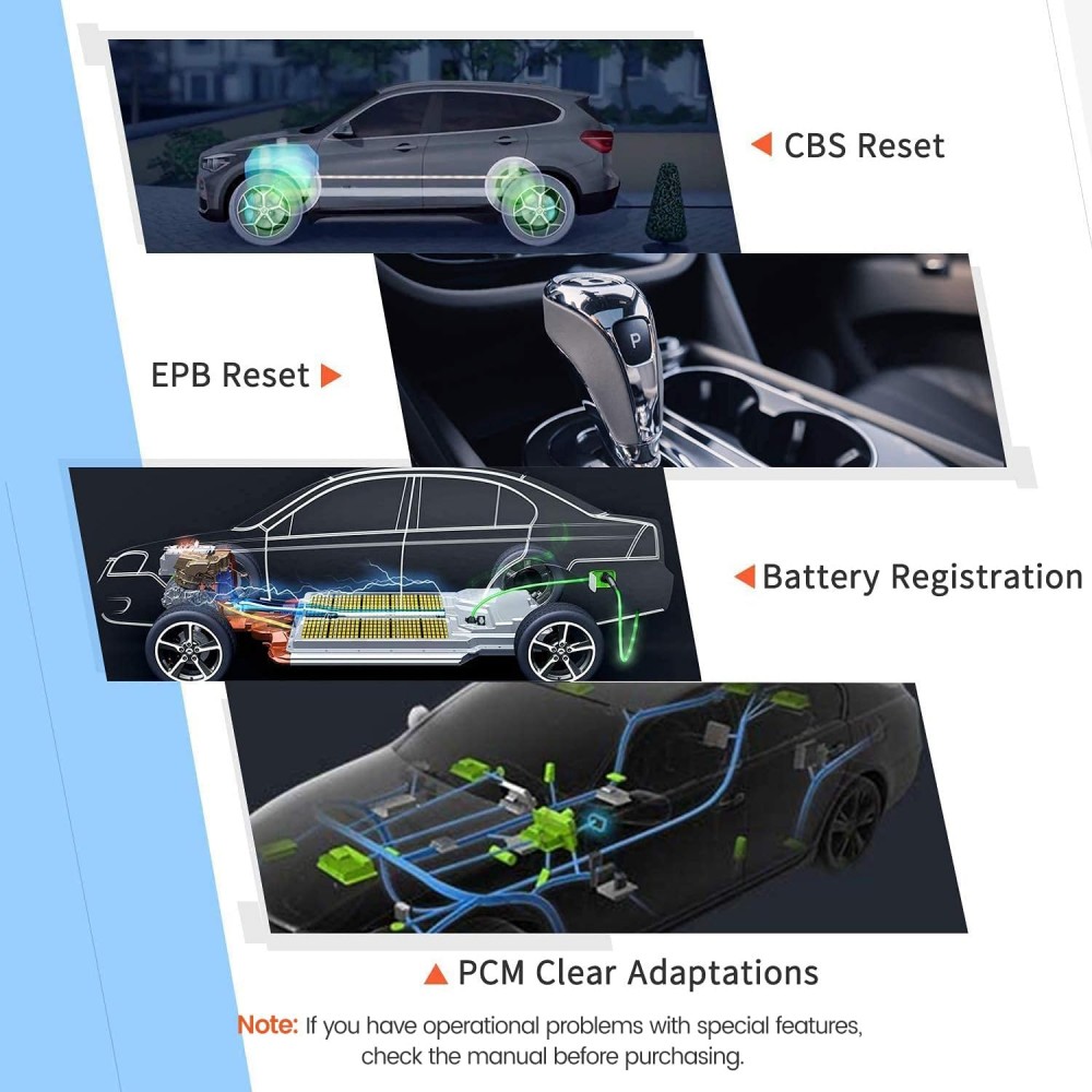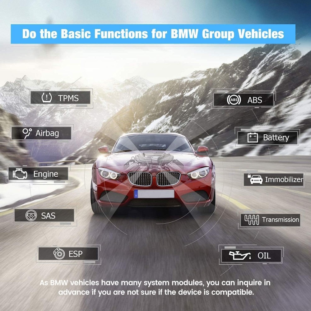 BM500 OBD2 skaitytuvas gali nuskaityti ir ištrinti klaidų kodus visuose pagrindiniuose sistemose, įskaitant variklį, ABS, transmisiją, SAS, SRS, ESP, TPMS ir kt. Taip pat gali nuskaityti duomenų srautus iš variklio, ABS, oro pagalvių ir transmisijos.