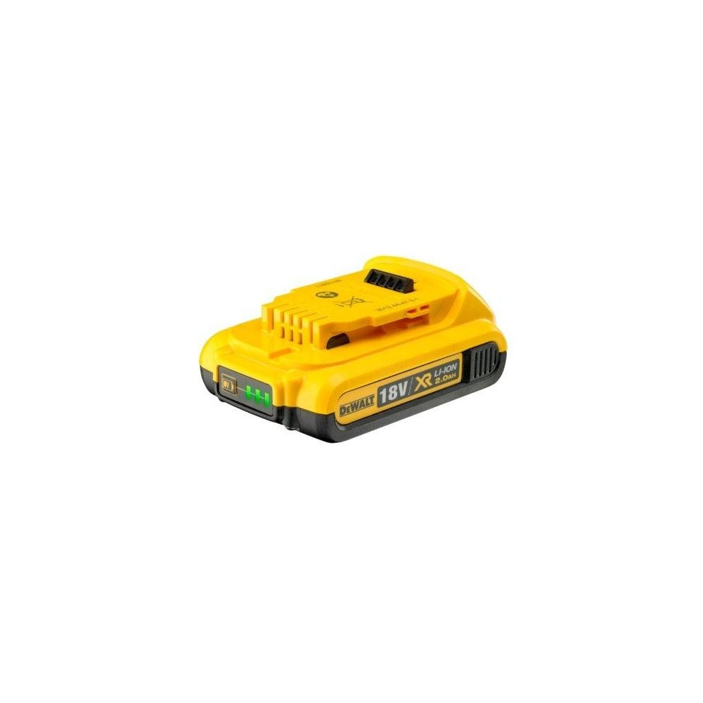 Komplekte yra vienas 18 V 2,0 Ah ličio jonų akumuliatorius, pasižymintis ilga veikimo trukme ir dideliu greičiu bei mažu svoriu ir kompaktišku dizainu, pakrovėjas DeWalt DCB1102 ir patogus krepšys, skirtas įrankio transportavimui ir saugojimui.