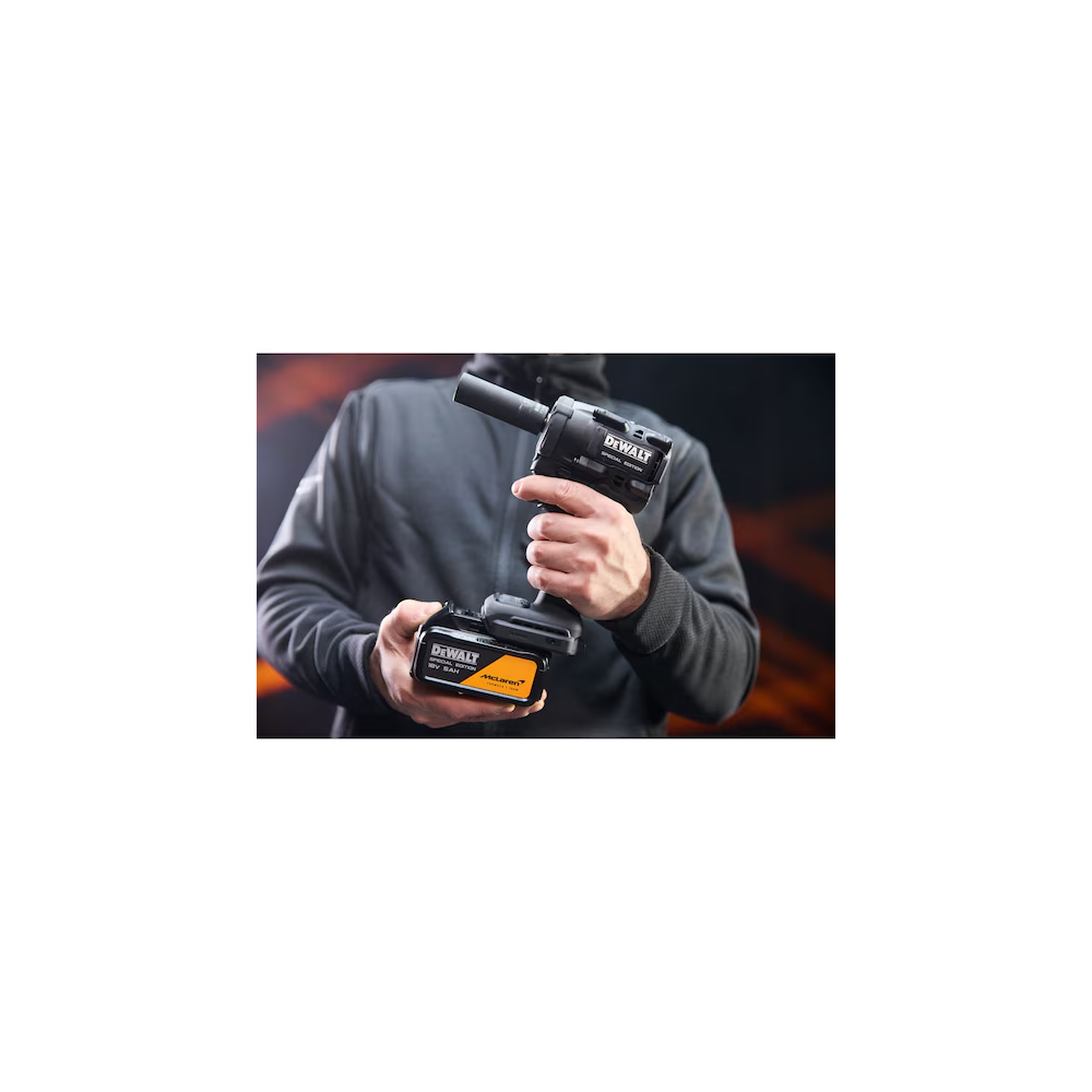 DeWALT x McLaren F1 Team DCF92MP2T – tai riboto leidimo 18V XR kompaktiškas smūginis veržliasukis, kuriame susijungia aukščiausio lygio inžinerija ir „Formulės 1“ įkvėpta inovacija. Sukurtas profesionalams, kuriems reikia maksimalios galios ankštose vietose – tiek autoservise, tiek statybų objekte.