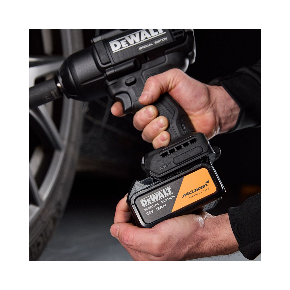 DeWALT x McLaren F1 Team DCF99MP2T-XE – riboto leidimo 18V XR aukšto sukimo momento smūginis veržliasukis, sukurtas profesionalams, kuriems reikia maksimalios galios ir absoliučios kontrolės. Tai įrankis, kuriame susijungia „Formulės 1“ įkvėpta inžinerija ir legendinis DeWALT patvarumas.