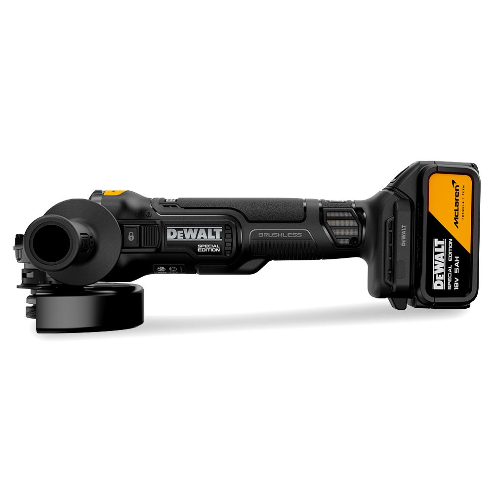 Profesionalus 18V XR akumuliatorinis kampinis šlifuoklis, skirtas intensyviems pjovimo ir šlifavimo darbams statybose bei dirbtuvėse. Įrankis turi bešepetėlinį variklį, kuris užtikrina didesnį efektyvumą, ilgesnį tarnavimo laiką ir mažesnį energijos suvartojimą.
