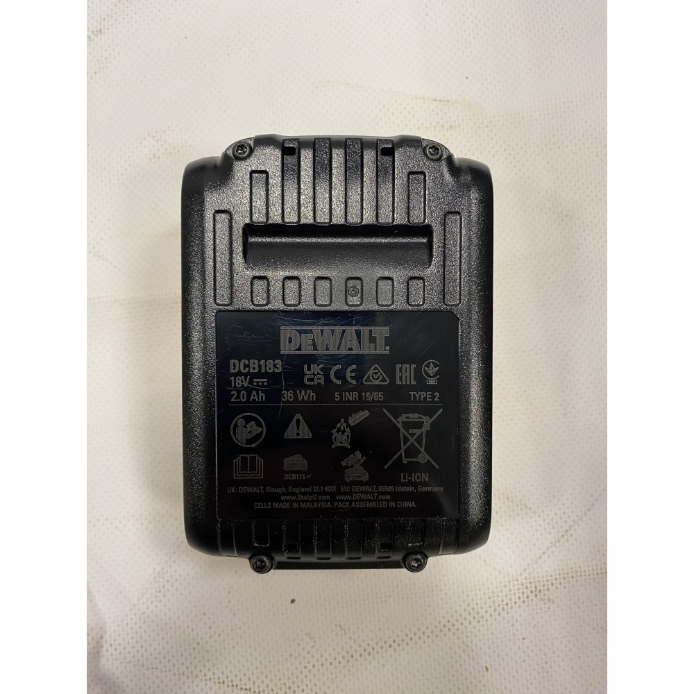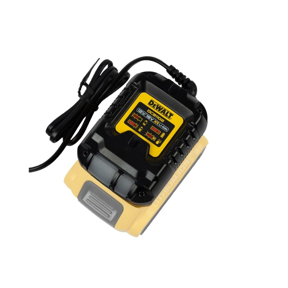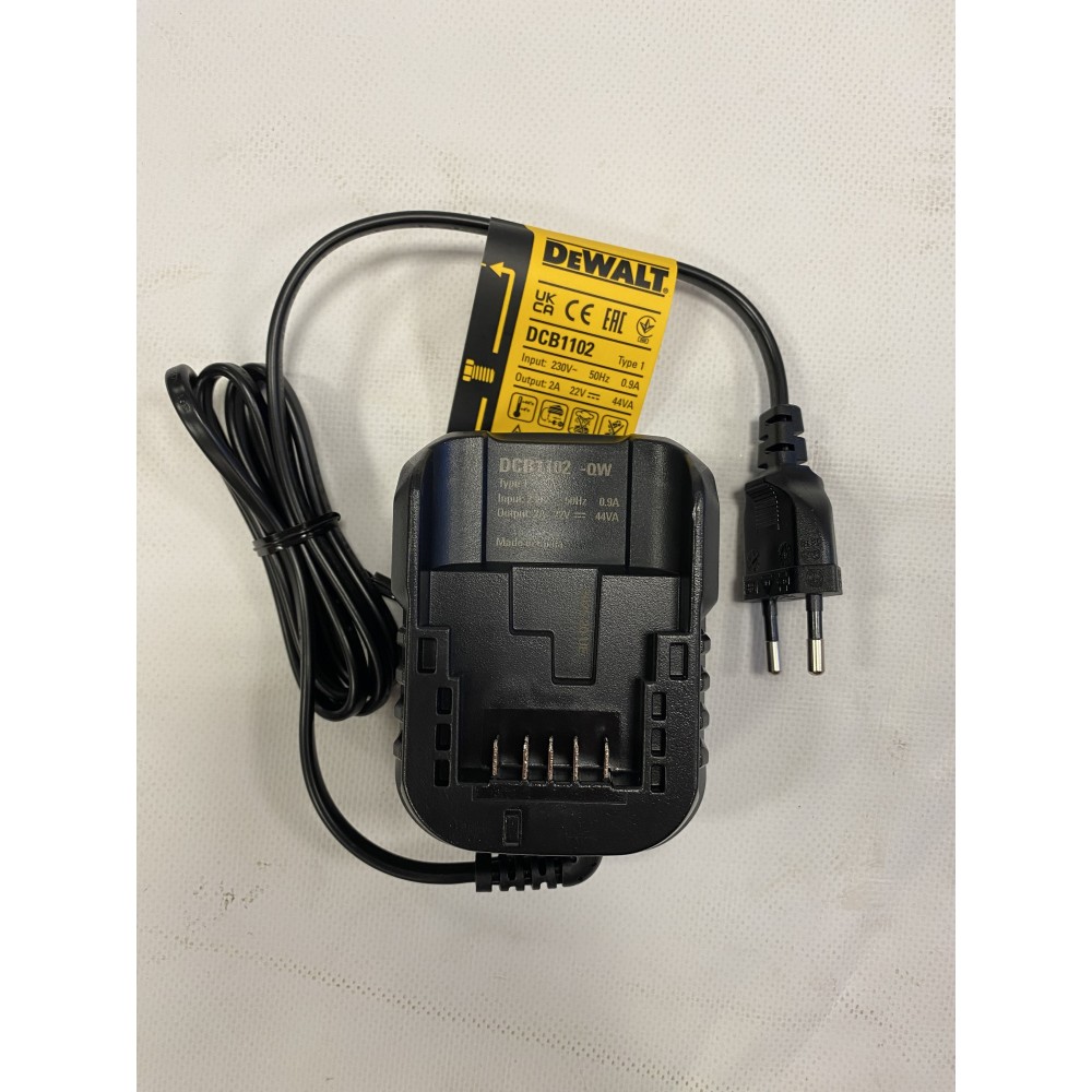 Komplekte yra vienas 18 V 2,0 Ah ličio jonų akumuliatorius, pasižymintis ilga veikimo trukme ir dideliu greičiu bei mažu svoriu ir kompaktišku dizainu, pakrovėjas DeWalt DCB1102 ir patogus krepšys, skirtas įrankio transportavimui ir saugojimui.