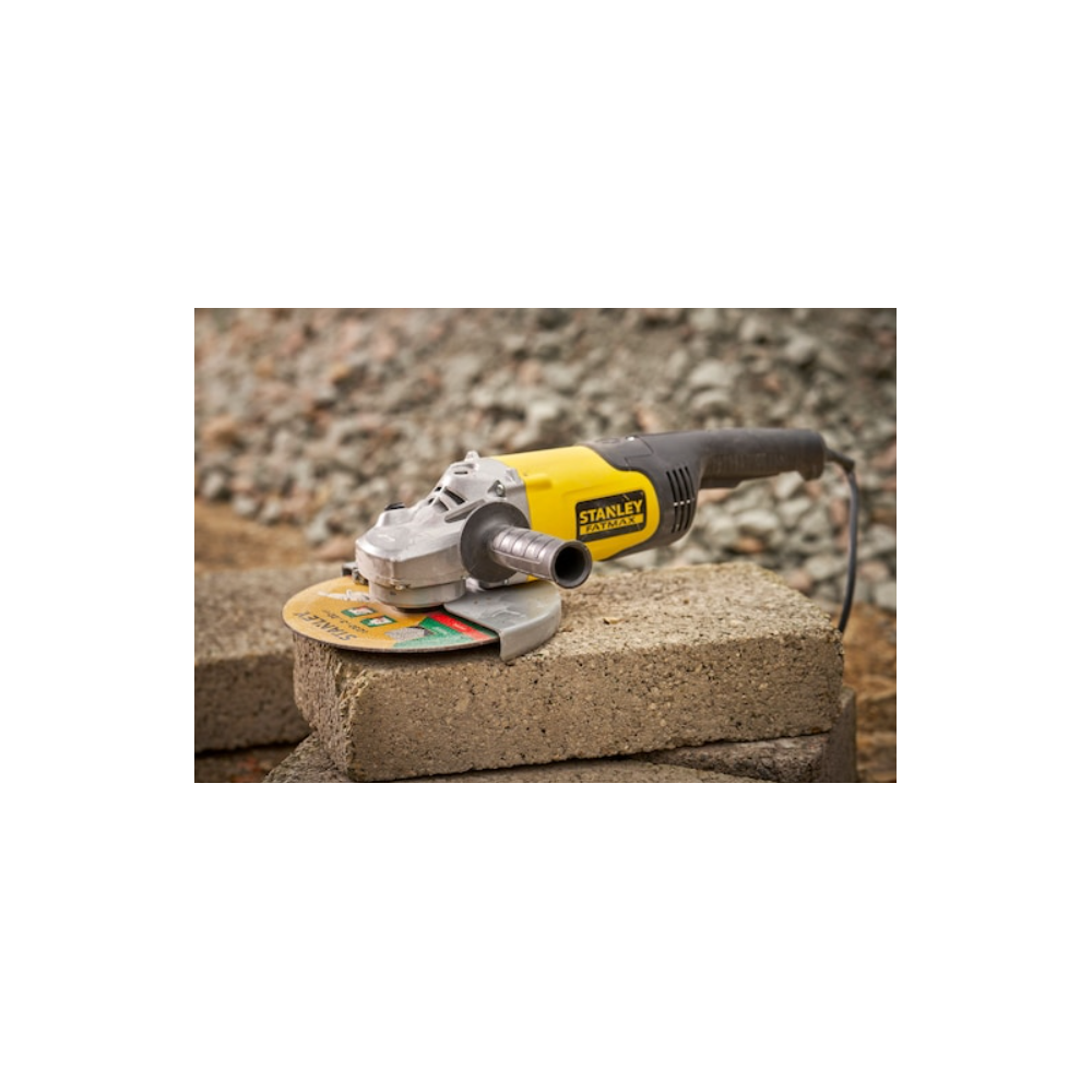 Galingas 2000 W laidinis kampinis šlifuoklis sukuriantis iki 6500 aps./min, užtikrinantis greitą ir efektyvų pjovimą bei šlifavimą. 3 padėčių šoninė rankena suteikia geresnę kontrolę, o lengvesnė konstrukcija ir fiksuojamas jungiklis sumažina nuovargį ilgesnio darbo metu. Integruota veleno fiksacija leidžia greitai pakeisti diską. Puikus pasirinkimas intensyviems metalo, betono ir kitų medžiagų pjovimo darbams.