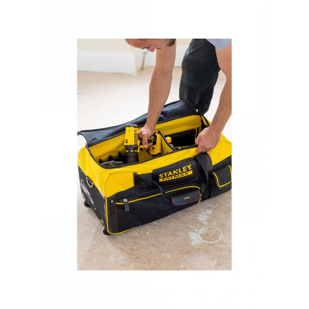 FMST82706-1 Stanley FATMAX įrankių krepšys– idealus sprendimas įrankių transportavimui darbo vietoje. Didelės talpos krepšys leidžia sutalpinti kelis elektrinius įrankius, rankinius įrankius ir priedus. Plati viršutinė anga suteikia patogią prieigą prie turinio, o vidinis skirtukas bei kelios kišenės padeda palaikyti tvarką smulkiems įrankiams ir asmeniniams daiktams.