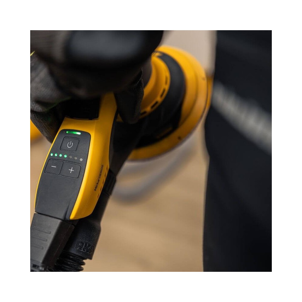 Dėl žemo triukšmo lygio ir mažų vibracijų įrankis be nuovargio gali būti nadojamas ilgą laiką. Naujas dizainas ir patogi konstrukcija palengvina operatoriaus šlifavimo greičio reguliavimą. Mirka DEROS II turi aiškiai matomus LED indikatorius greičio pasirinkimui.