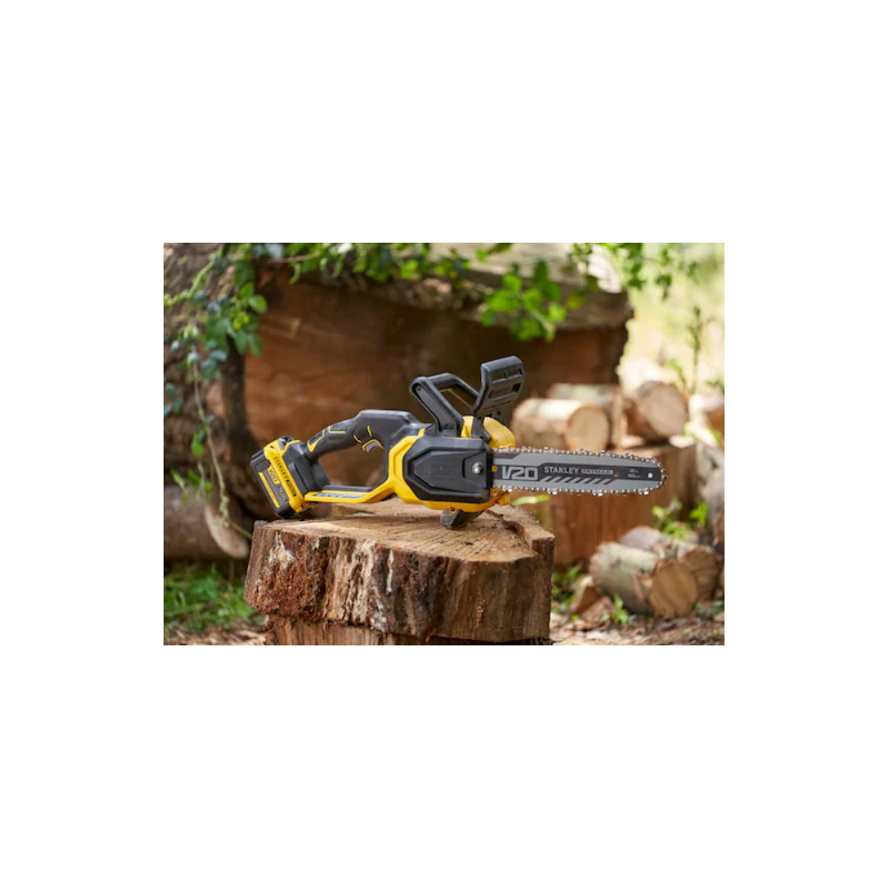 Stanley FATMAX V20 18V 30 cm bešepetėlinis grandininis pjūklas skirtas vidutinio ir didesnio storio šakų bei rąstų pjovimui. Tai patikimas sprendimas nukritusių medžių šalinimui, genėjimui, šakų pjovimui ir kasdienei priežiūrai aplink namus ar sodyboje.
