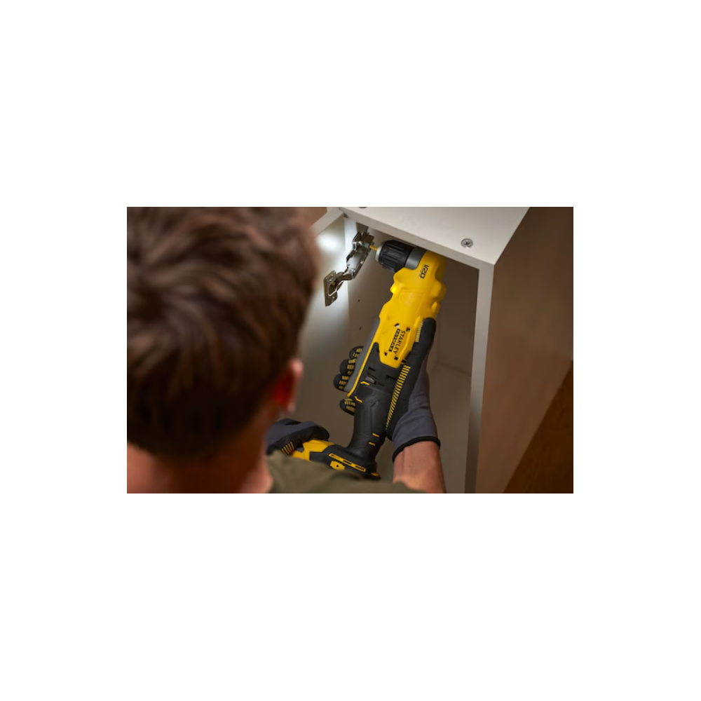 Akumuliatorinis kampinis gręžtuvas Stanley FATMAX V20 pasižymi patobulinta 18V Li-Ion akumuliatoriaus technologija – be atminties efekto ir su minimaliu savaiminiu išsikrovimu, todėl įrankis visuomet paruoštas darbui bet kur ir bet kada.