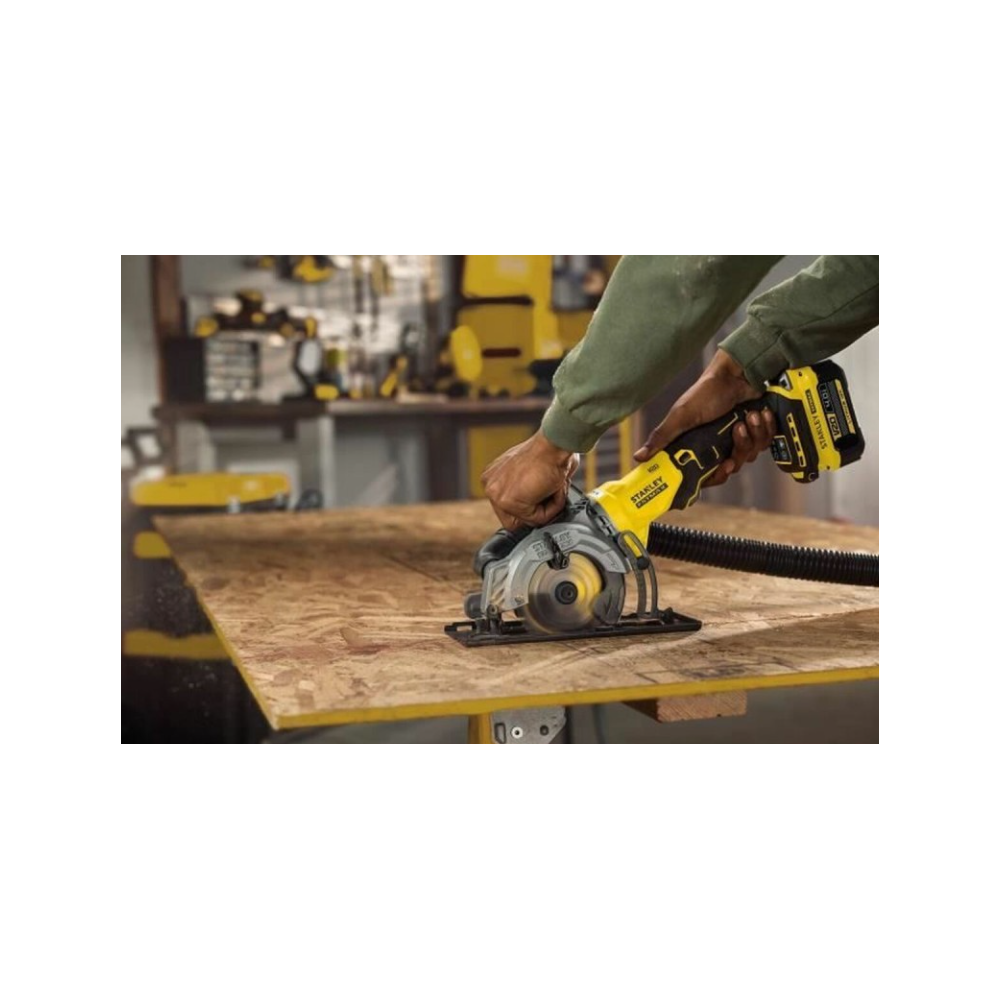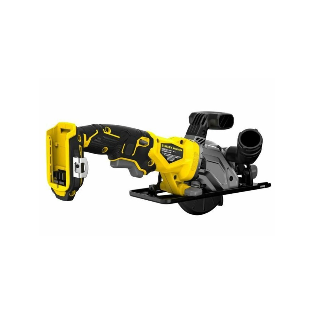 SFMCS515B Stanley FATMAX – tai kompaktiškas 18V V20 serijos diskinis pjūklas su bešepetiu varikliu, užtikrinančiu didesnį našumą, ilgesnį tarnavimo laiką ir didesnį energijos efektyvumą. Įrankis sukurtas saugiam ir tiksliam darbui – elektrinis disko stabdis užtikrina momentinį disko sustabdymą, o jungiklio blokavimo funkcija padidina darbo saugumą.