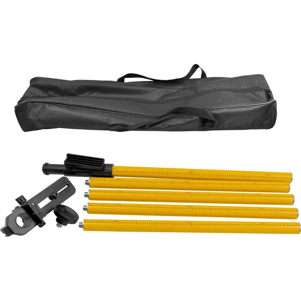 • Atraminis strypas turi laikiklį su lazerio pagrindu, leidžiantį laipsniškai reguliuoti lazerio aukštį beveik visoje strypo ilgyje.