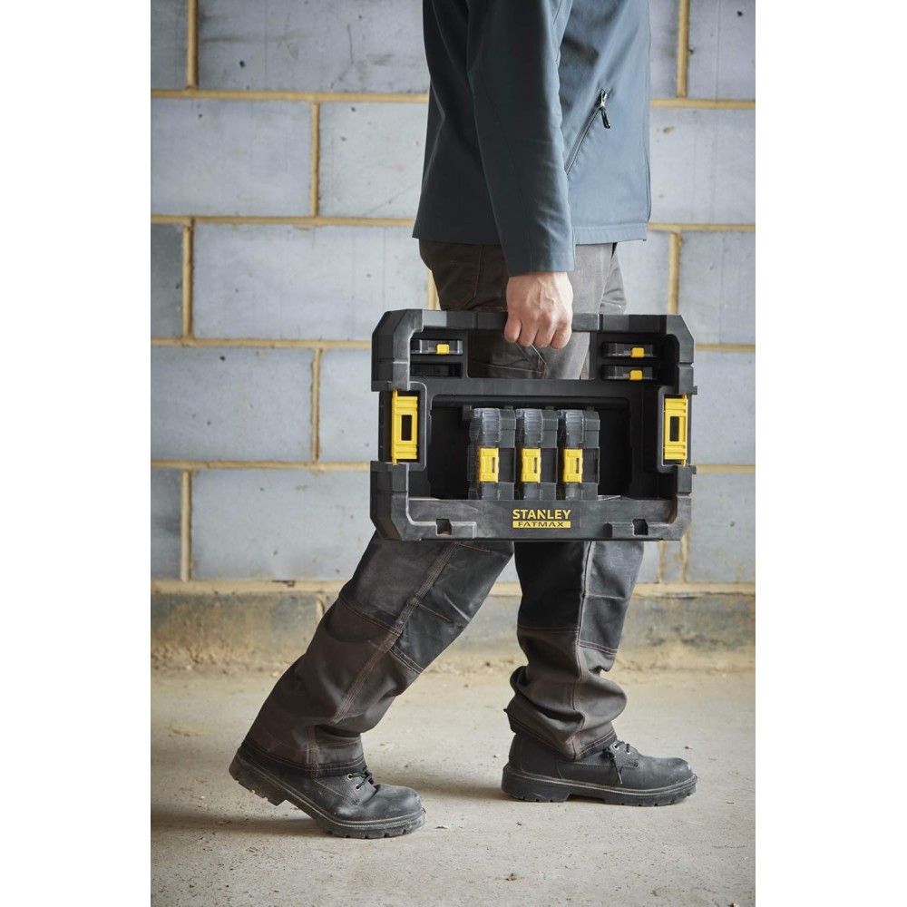 STA88580-XJ Stanley FATMAX PRO-STACK dėklas priedams — tai tarpusavyje sujungiama, lengvai transportuojama ir universali laikymo sistema, skirta patogiam įrankių ir priedų organizavimui.