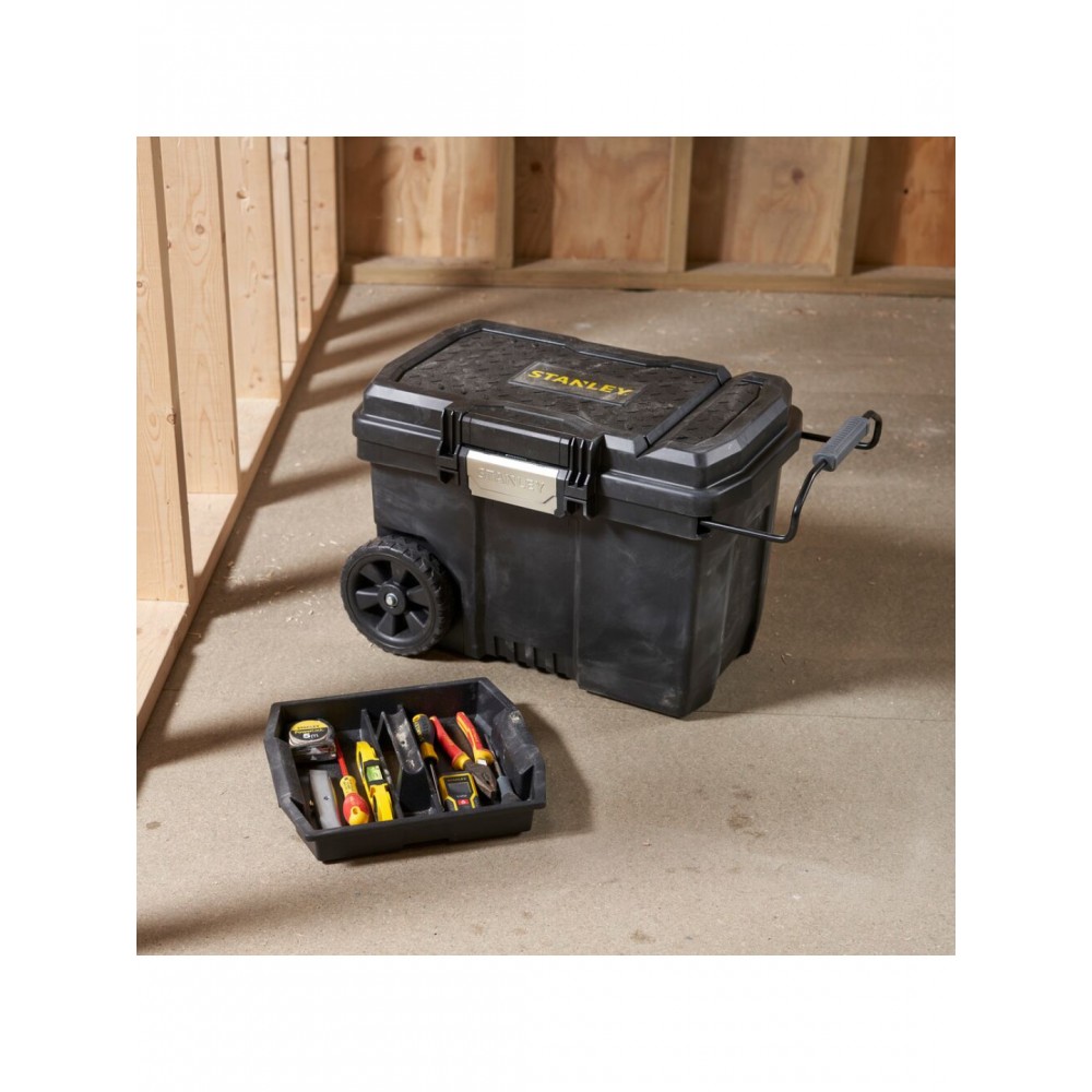 Įrankių dėžė aprūpinta integruotu išimamu padėklu, skirtu smulkiems įrankiams, detalėms ir priedams. Dangtyje esantis V formos griovelis leidžia patogiai pjauti vamzdžius ar medieną tiesiai ant dėžės. Tekstūruota traukimo rankena bei patvarūs 7 colių ratukai užtikrina lengvą transportavimą, net ant nelygaus paviršiaus. Maksimali apkrova – 40 kg, talpa – 52 l.