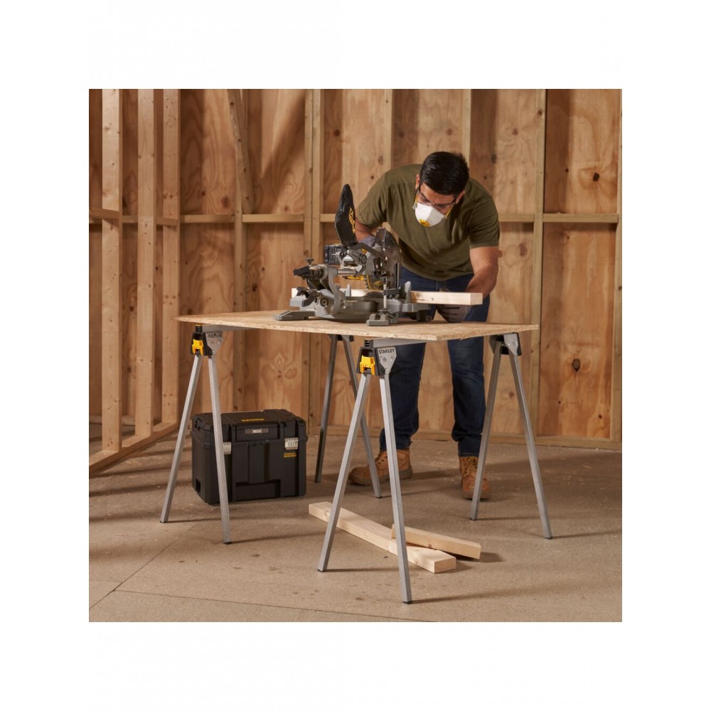 Stanley STST81337-1 – tai tvirtas ir patogus metalinių stovų rinkinys (2 vnt.), skirtas greitam laikinam darbastaliui arba lygiam paviršiui sukurti. Idealiai tinka medžiagoms pjaustyti, įvairiems darbams dirbtuvėse ar statybų vietoje.