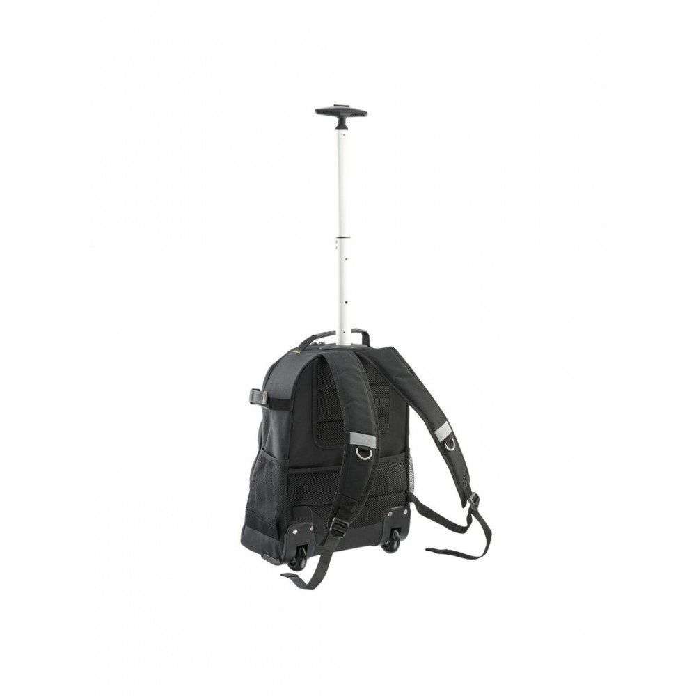 Kuprinė su ratukais turi plačią užtrauktuko konstrukciją, leidžiančią greitai ir patogiai pasiekti įrankius. Tvirta vandeniui atspari apačia apsaugo turinį nuo purvo ir drėgmės. Kuprinę galima patogiai nešioti dviem paminkštintais petnešomis arba tempti ratukais naudojant teleskopinę rankeną sunkiems kroviniams.