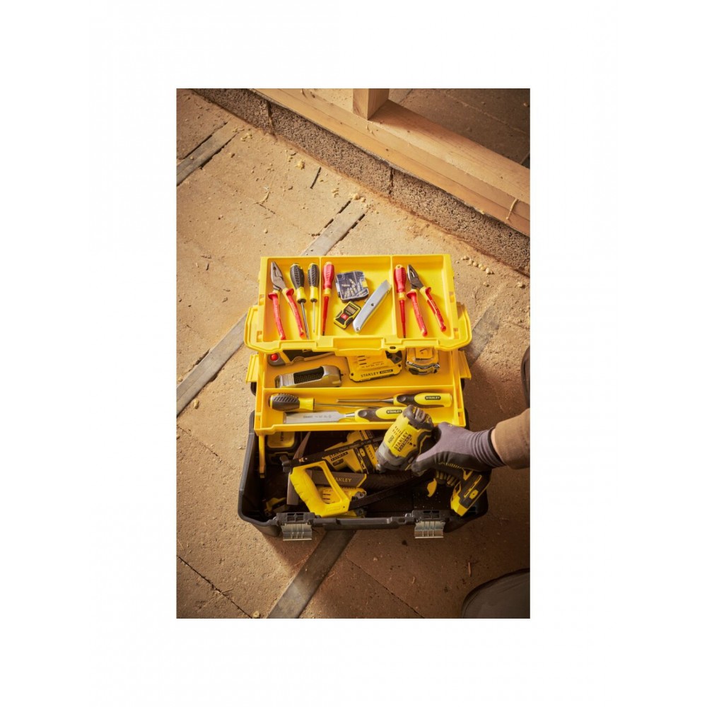 Viską laikykite po ranka su STST83397-1 Stanley Essential Cantilever įrankių dėžė, turinčia tris saugojimo lygius, kad įrankiai ir priedai visada būtų lengvai pasiekiami.