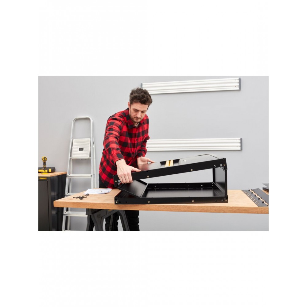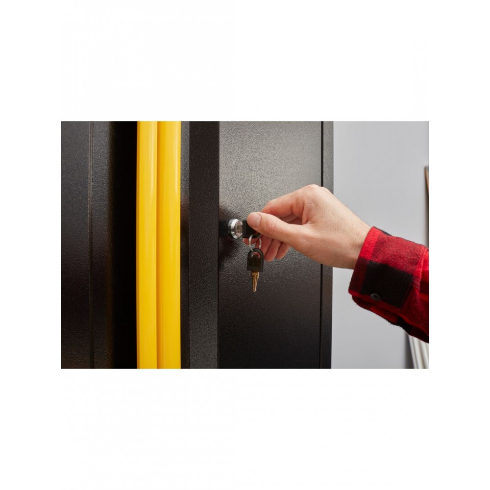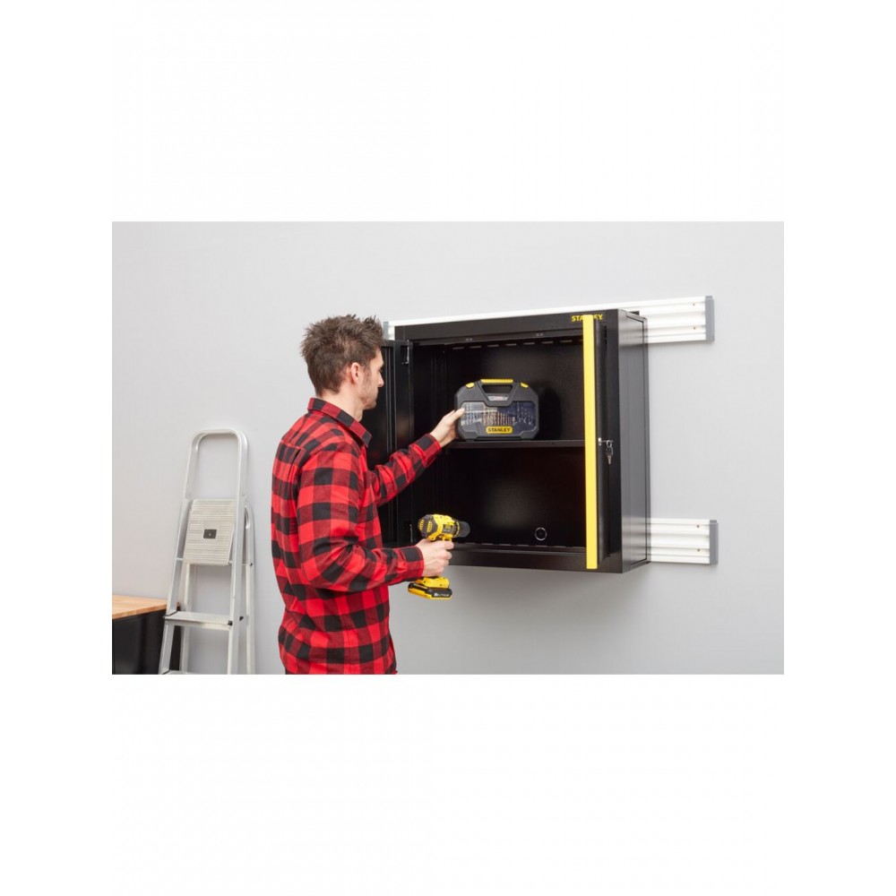 STST97598-1 Stanley dviejų durelių sulankstoma sieninė spintelė yra dalis lengvai surenkamų garažo laikymo sprendimų linijos, sukurtos saugiai, tvarkingai ir patogiai organizuoti garažą, dirbtuves ar ūkinį pastatą.