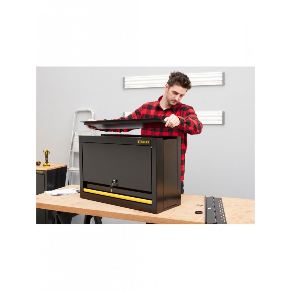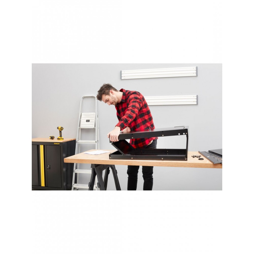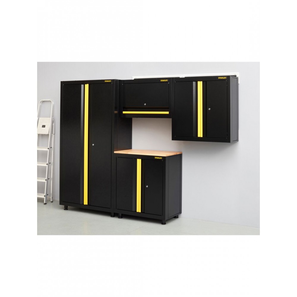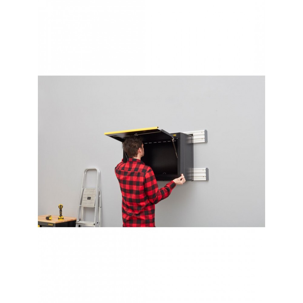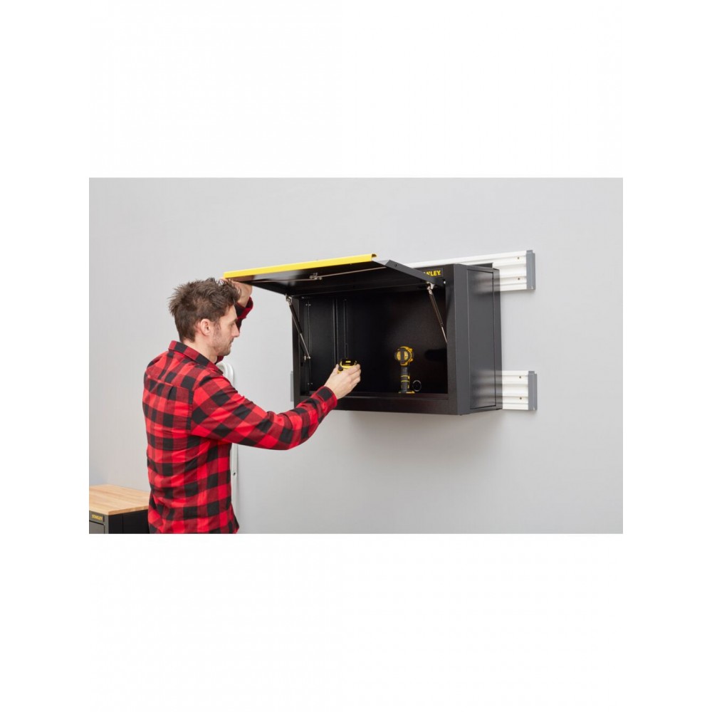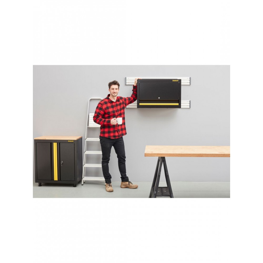 STST97599-1 Stanley sulankstoma sieninė spintelė yra dalis lengvai surenkamų garažo laikymo sprendimų linijos, sukurtos saugiai, tvarkingai ir patogiai organizuoti garažą, dirbtuves ar ūkinį pastatą.