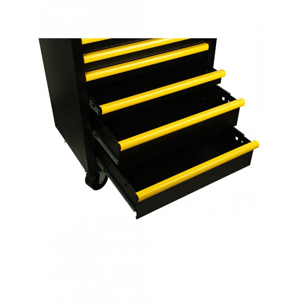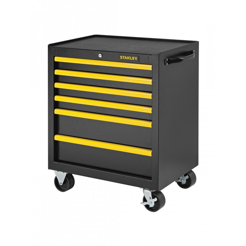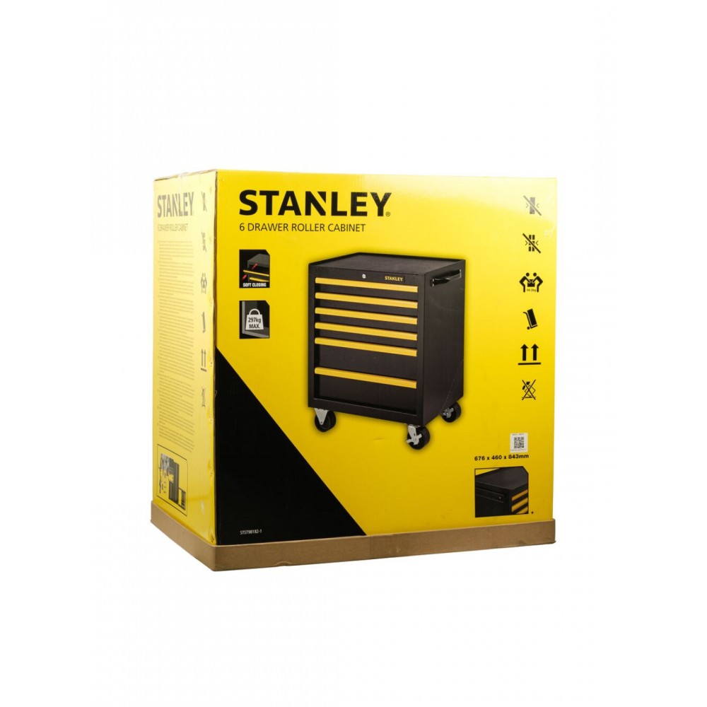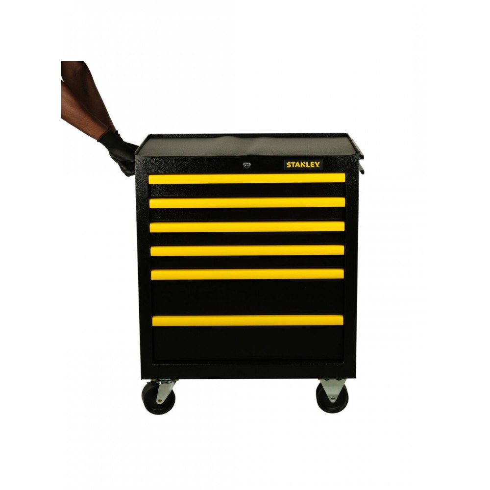 STST98182-1 Stanley įrankių vežimėlis skirtas dideliam įrankių kiekiui laikyti ir patogiai transportuoti. Vežimėlis turi stalčius su slankiojančiomis bėgelėmis ir švelniai užsidarančiais rutuliniais guoliais, leidžiančius saugiai laikyti iki 45 kg kiekvienam stalčiui.